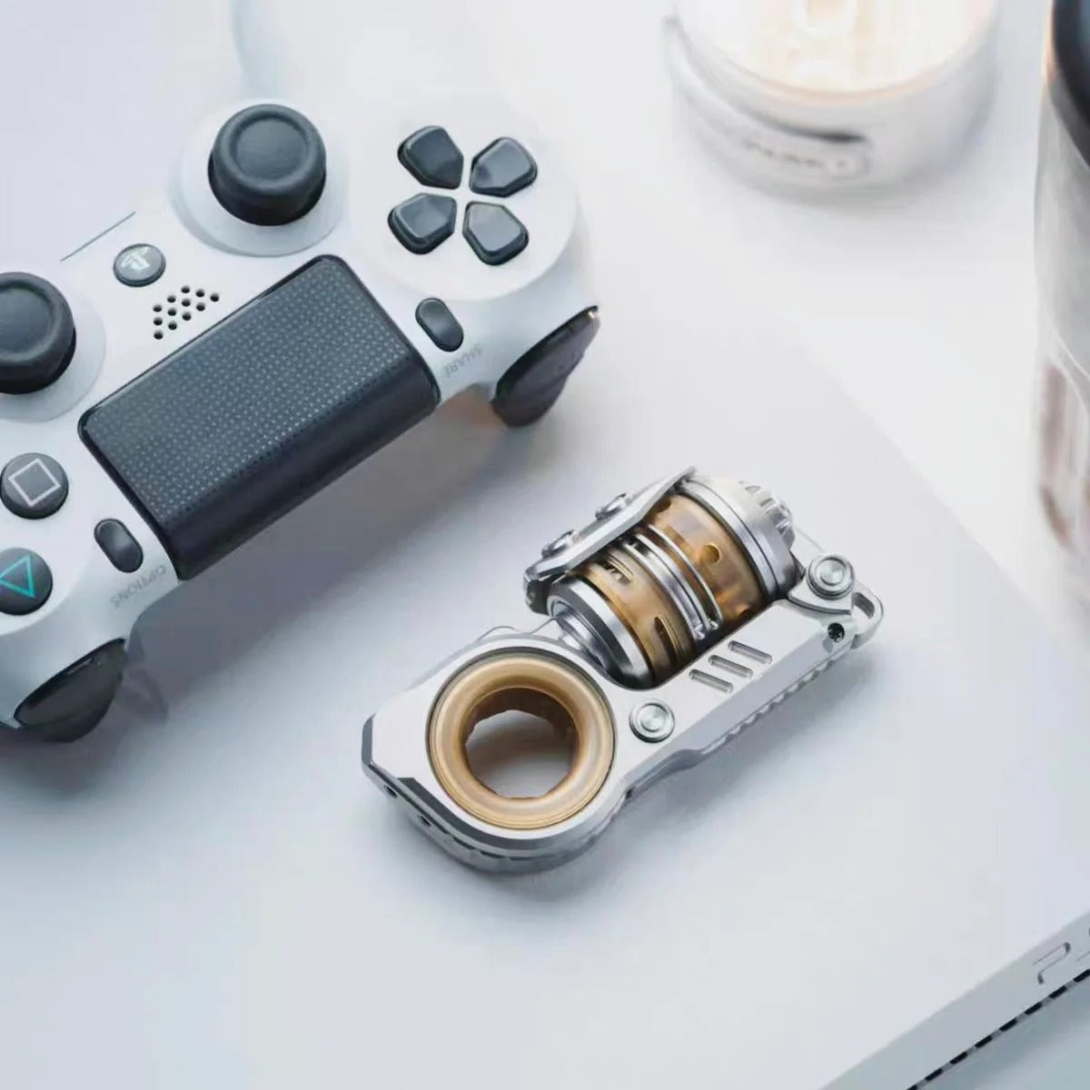 The finger ring top spins smoothly with a crisp, audible click, offering both tactile satisfaction and audio feedback that make it more than just a toy—it's a sensory tool. Beneath the ring, the rotating paddle mechanism opens the door to multiple styles of play: push up/down, spin, ratchet, and more.But it doesn't stop there—designed with dual small mounting holes, this fidget toy can be upgraded by adding your own tungsten steel awl to transform into a window breaker, giving it added value as an emergency EDC tool.Built with premium stainless steel and PEI, it combines durability and comfort, fitting perfectly in your hand or pocket. Ideal for fidgeters, EDC enthusiasts, or anyone seeking a stress-relieving tool that doubles as a functional accessory.