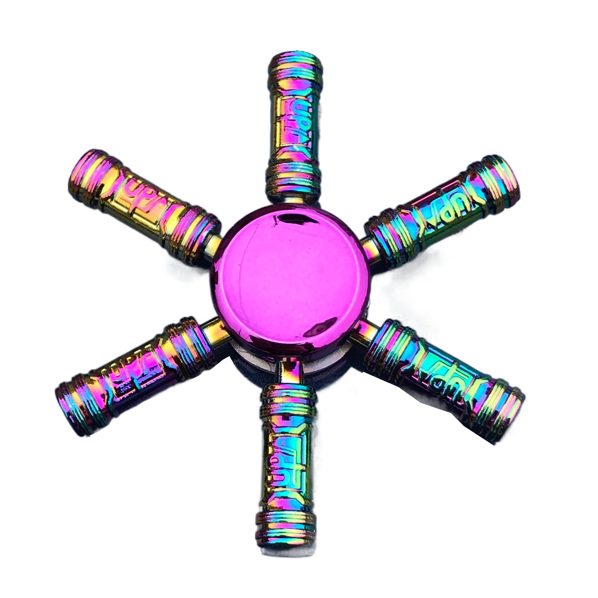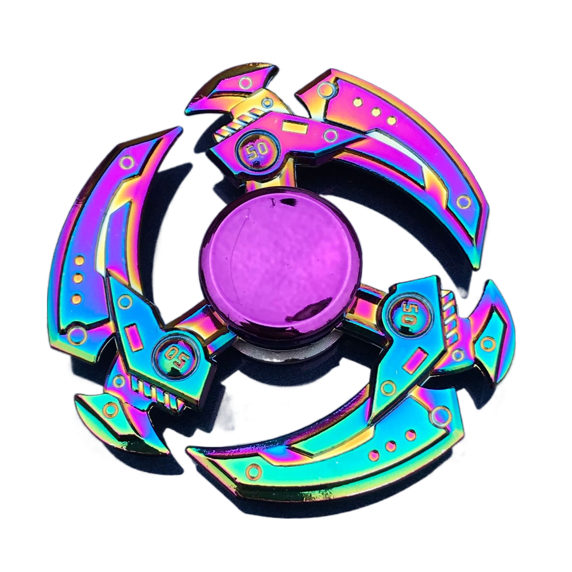 Unleash your inner focus with our weapon-style fidget spinner, featuring a durable metal frame with a vibrant, rainbow-chrome finish that shifts colors in the light. The center is crafted from smooth, ergonomic plastic for a comfortable grip during extended use. Its tactical design, inspired by blades and firearms, adds an edgy aesthetic while promoting stress relief and concentration. Perfect for office breaks, gaming sessions, or casual play, this spinner combines high-performance mechanics with striking visuals. An ideal gift for collectors, gamers, or anyone seeking dynamic sensory stimulation. Spin with style—order now!